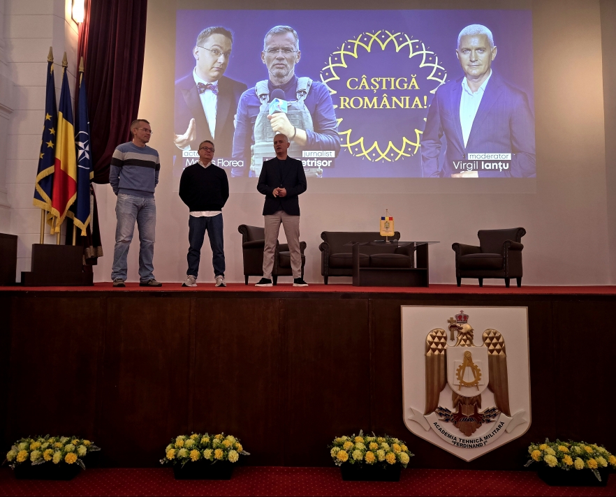 Într-o atmosferă relaxată, presărată cu glume, dar şi cu multe întrebări şi curiozităţi, marţi, 12 noiembrie, sute de studenţi ai Academiei Tehnice Militare „Ferdinand I” au lăsat pentru câteva ore cursurile deoparte şi au răspuns prezent invitaţiei lui Virgil Ianţu, gazda emisiunii „Câştigă România!”. Alături de el s-au aflat actorul Marius Florea Vizante şi jurnalistul Adelin Petrişor, într-o dezbatere dedicată tinerilor, cu teme despre cultură, educaţie, televiziune în era informațională, jurnalism în vreme de război şi fenomenul fake news.